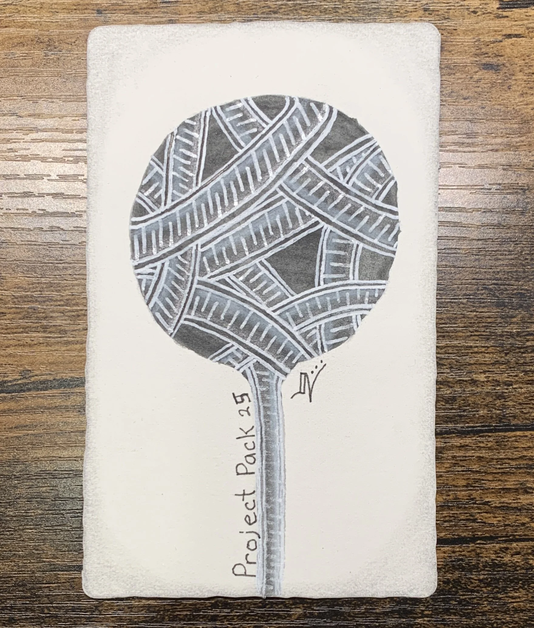 Can you believe we are already on Project Pack No. 25? It was released in early December 2024 and focused on the "drawing behind" technique. This technique, often referred to as “Hollibaugh” is a fundamental aspect of the Zentangle Method that enhances depth and dimension in artwork. This project pack is part of the annual "12 Days of Zentangle" series, where each day introduces a new lesson centered around this technique.